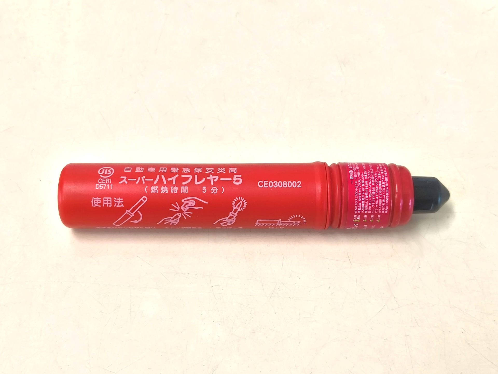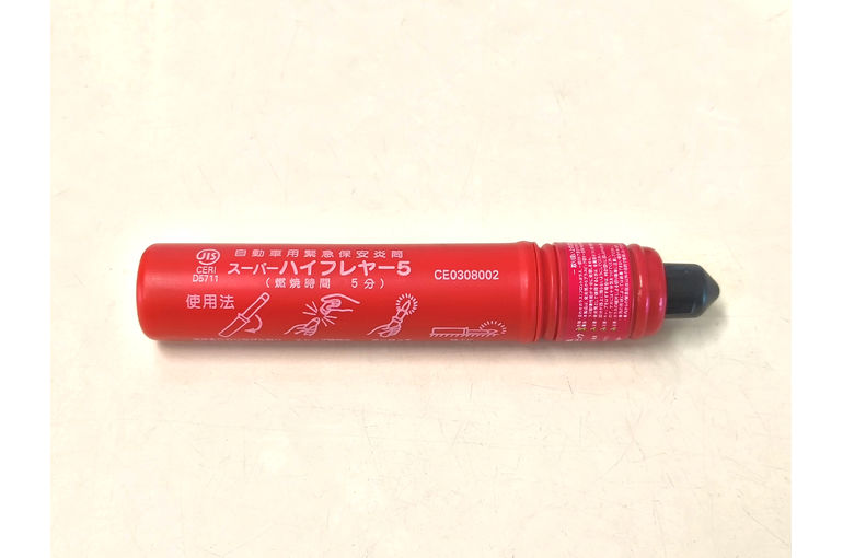 「スーパーハイフレヤープラス+ピック」は、発炎筒に緊急脱出用のガラス破壊具が付いた画期的なアイテムです。